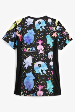 Cherokee Tooniforms DreamWorks Trolls Diamond Dance Women’s 3-Pocket V-Neck Print Scrub Top