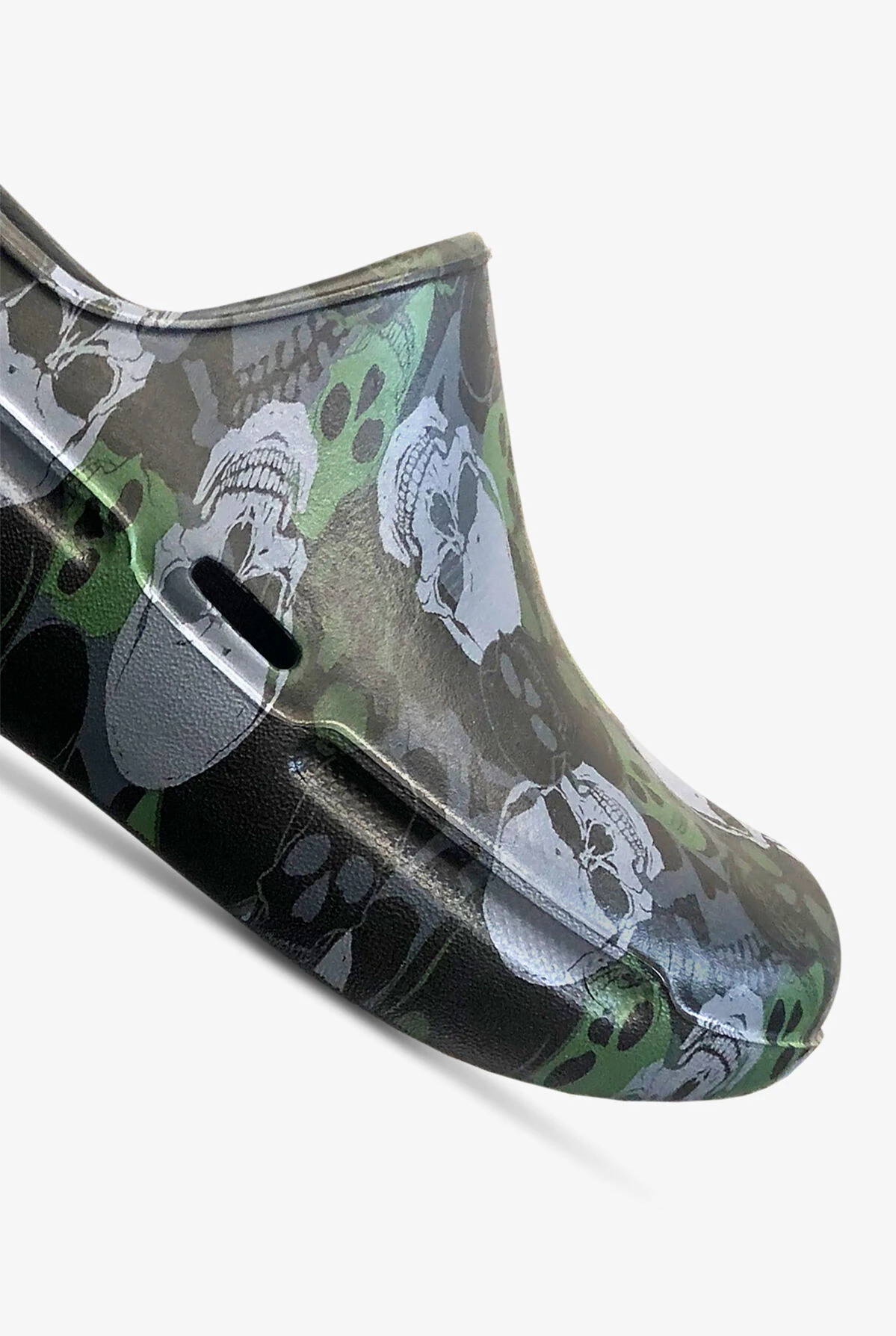Our Anywear Unisex Streak Skulls Slip On Shoes keep your feet dry, comfortable, and cushioned. Plus they provide plenty of traction, absorb shock, and are made to last for years. Plus looking great in olive and grey skulls on a black background.