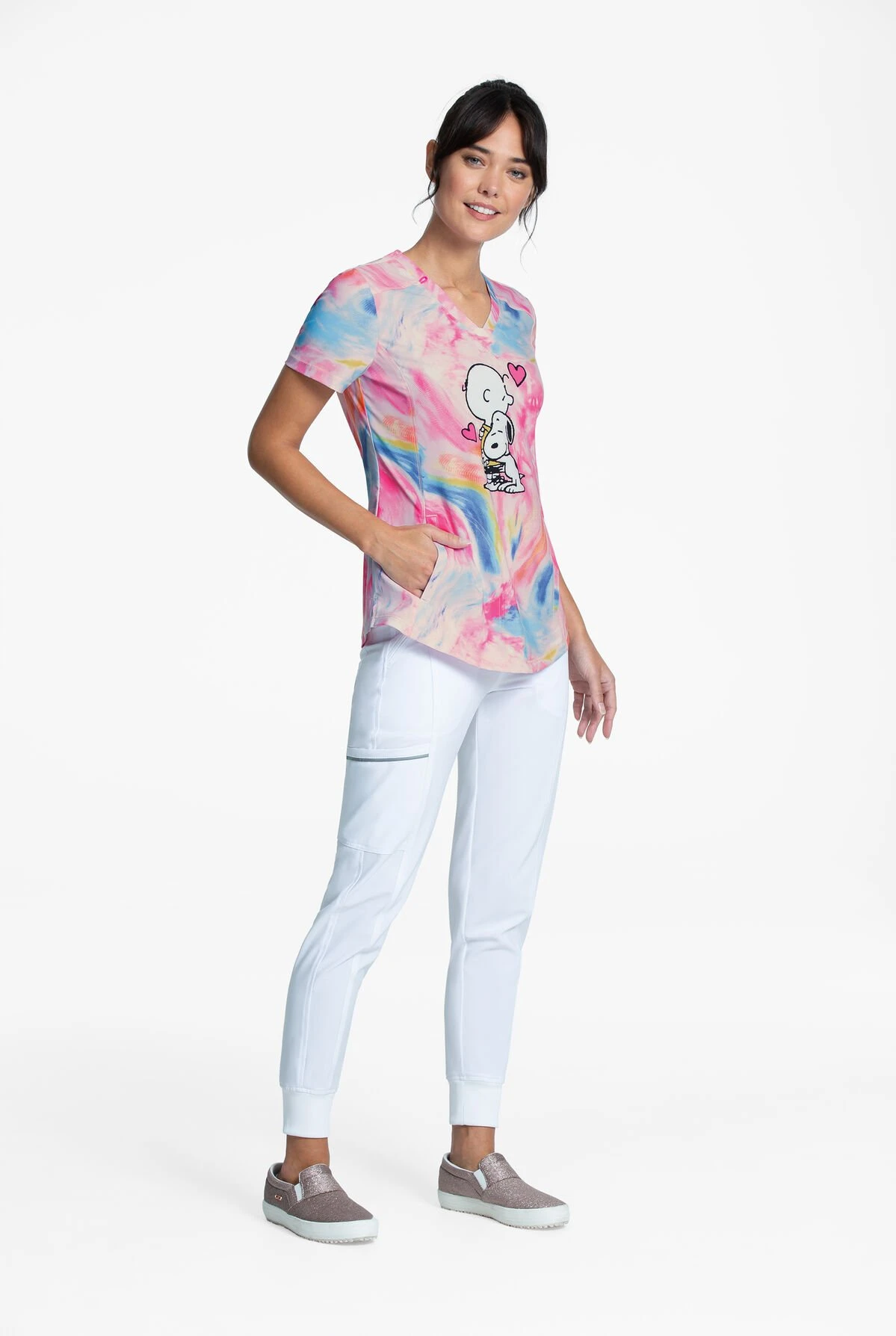 Cherokee Tooniforms Peanuts Dog’s Best Friend Women’s 2-Pocket V-Neck Print Scrub Top