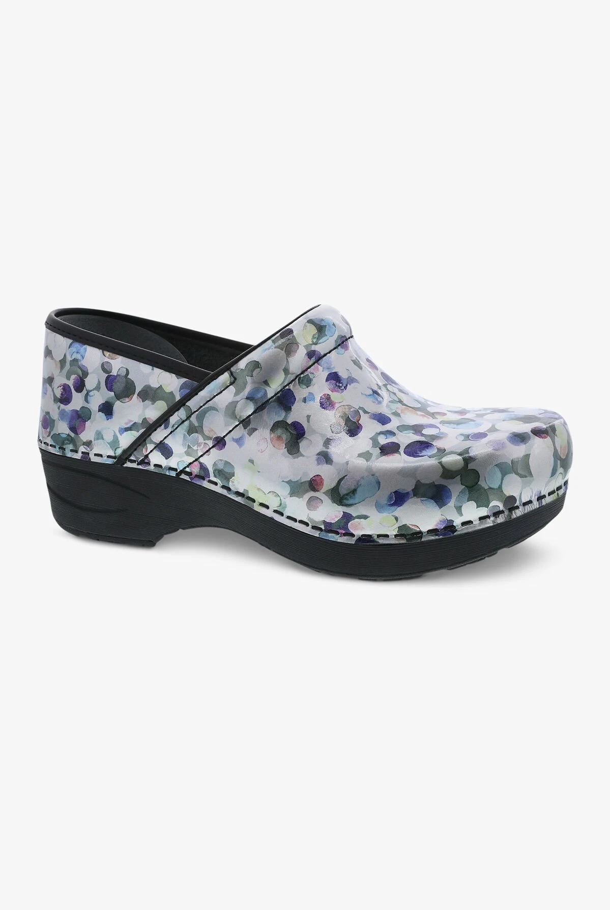 Dansko Women’s XP 2.0 Women’s XP 2.0 Multi Dot Patent Leather Nursing Clogs are accepted by the American Podiatric Medical Association (APMA). Designed for comfort and support from roomy toe box to memory foam insole to protective heel counter. The rocker bottom keeps you moving, fights fatigue and is slip and oil resistant. Overlapping dots of colors on silver background.