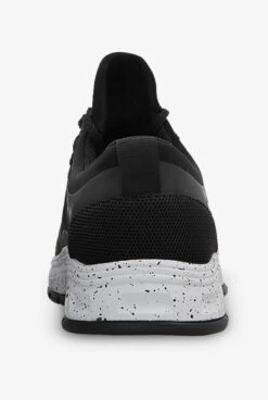 Infinity by Cherokee Fly Black Flecked Athletic Lace Up Shoes feature breathable mesh uppers with adjustable laces. A removable, multi-layered insole and EVA midsole cushion and support. Slip- and oil-resistant outsole has strategically-placed flex grooves. In classic black with a cool flecked midsole.