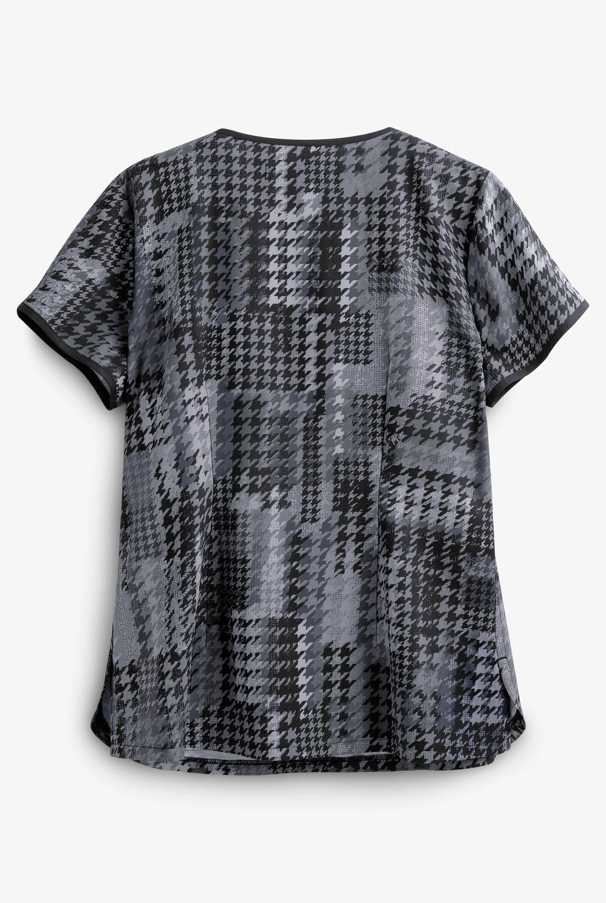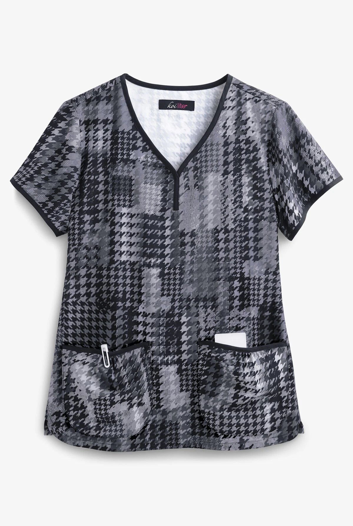 Koi Lite⢠Houndstooth Platinum Eve Women’s 2-Pocket Y-Neck Print Scrub Top