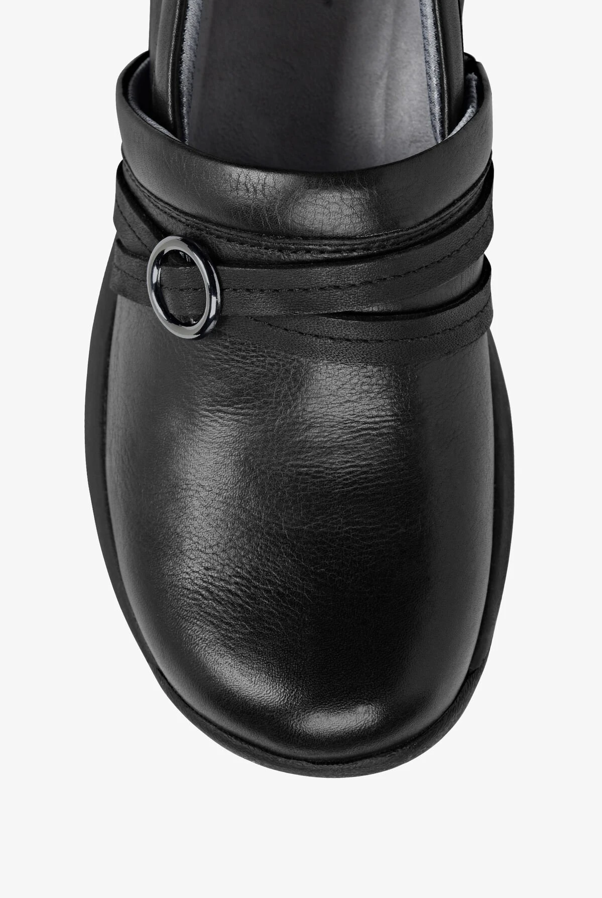 The Nurse Mates 2001004 Ceri Nursing Shoes feature a stain resistant full grain leather upper, decorative straps with buckle details, and a padded collar for a comfortable fit. These slip-resistant shoes also include Nursemates “Air Flow” insoles and a lightweight EVA outsole. Heel height is 1 1/2″.