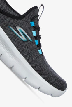 Skechers Performance Go Walk Flex Lucy Black Athletic Pull On Shoes feel great from top to bottom. Classic style in breathable mesh. Shock absorbing Aircooled Goga Mat® insole, Comfort Pillar Technology® for added support. Cushiony midsole and dual-density traction rubber outsole for stability. Conscientiously crafted with 100% vegan materials.